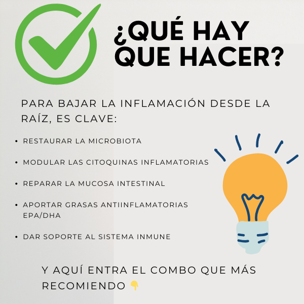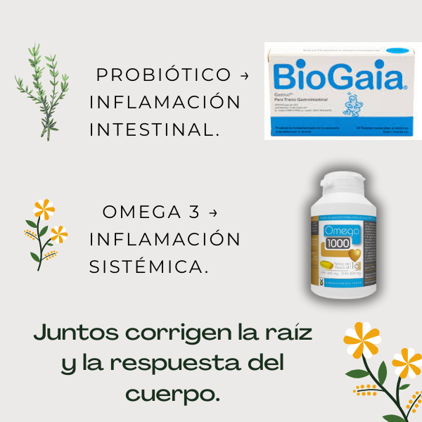 Este kit se complementa muy bien con otros suplementos de apoyo antiinflamatorio y digestivo, potenciando la recuperación, el equilibrio de la microbiota y la reducción de inflamación dentro de un enfoque de medicina funcional.