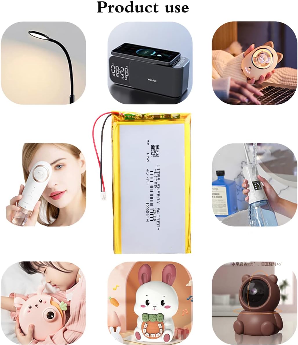 3.7V 1260110 10000mAh Lithium Polymer ion Battery Rechargeable Polymer Battery Pack with JST 2.0mm Connector