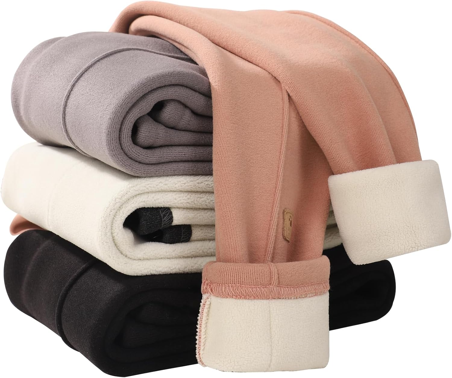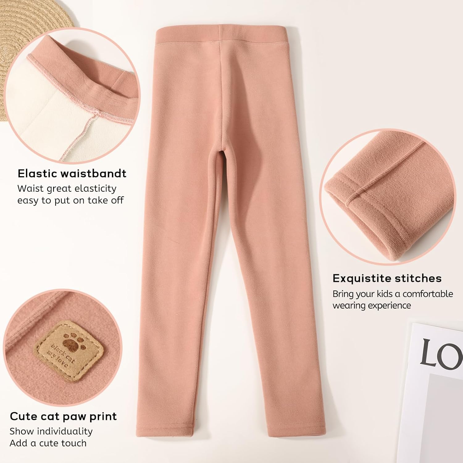 4 Pack Girls Fleece Lined Leggings Kids Winter Warm Pants Girls Thick Basic Solid Full Length Pants