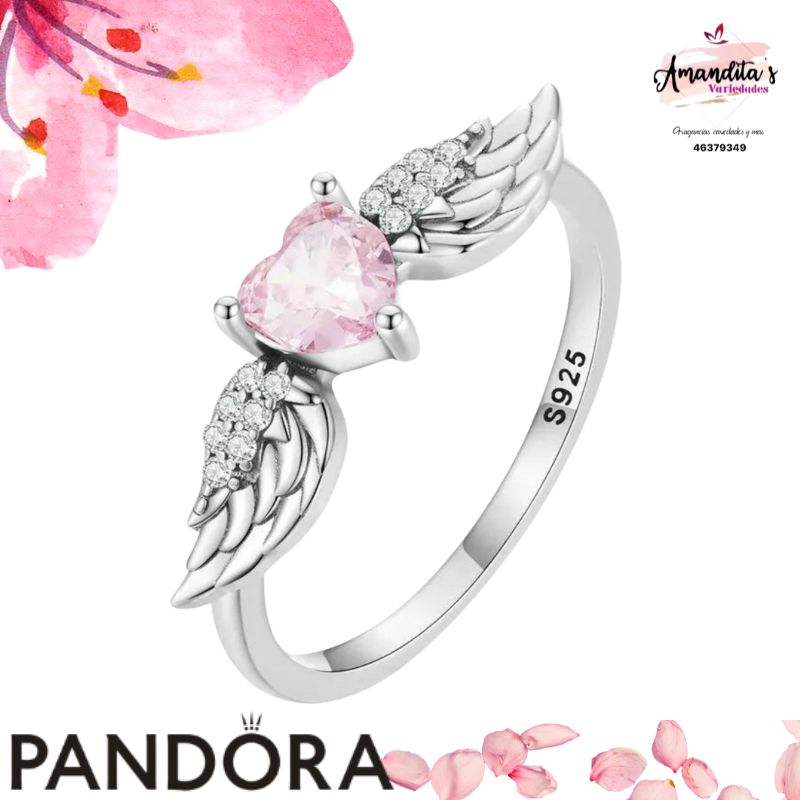 Solitario de corazón rosa con alas