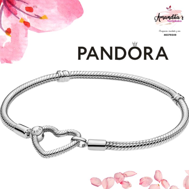 Haz que tu muñeca brille con el brazalete cadena de serpiente con cierre de corazón Pandora Moments Este brazalete de plata esterlina tiene el icónico patrón de cadena de serpiente de Pandora y un broche en forma de corazón. El cierre tiene la misma función que el cierre de langosta y se le puede dar estilo con dos colgantes o pendientes. El cierre también gira, lo que le da a este brazalete un elemento sorpresa de movimiento dinámico. Agrega tus charms favoritos a este brazalete y crea un estilo perfectamente personalizado.
