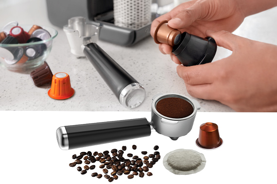 - Compatible con café espresso molido, sobres E.S.E. (sachects, pods) y cápsulas Nespresso® Original
