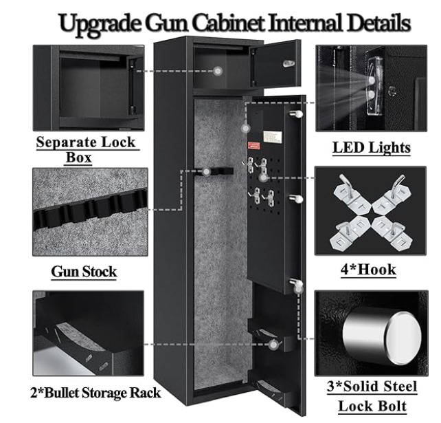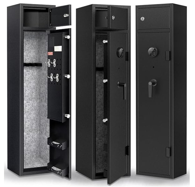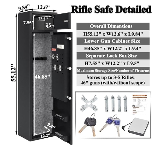 KAER Caja fuerte para rifles y escopetas, acceso rápido a 3-5 cajas fuertes de rifle de pistola (con o sin alcance), gabinete de armas con llave de puerta doble, contraseña de huellas dactilares, modo de alarma silenciosa