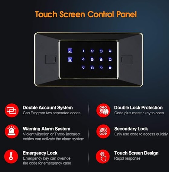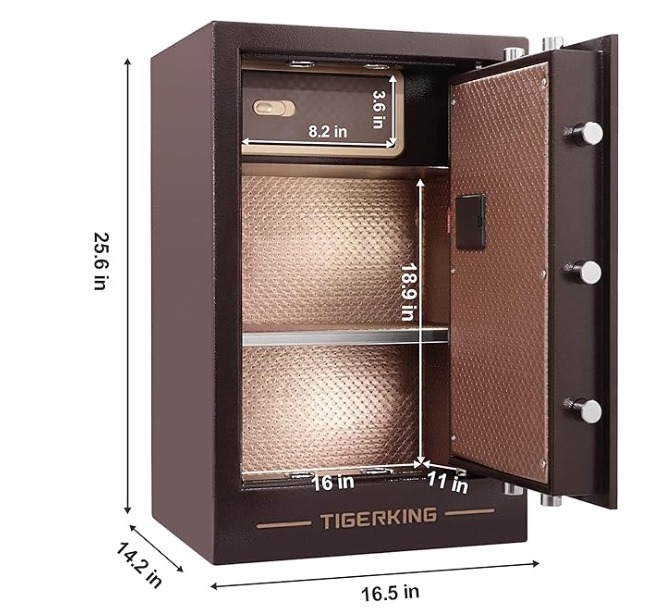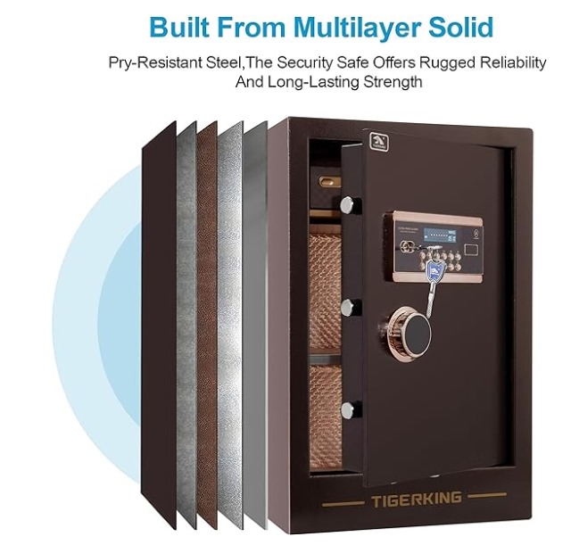 TigerKing – Caja de seguridad digital de aleación de acero sólido con 4 pernos de bloqueo, contraseña más ajuste de llave para el hogar, oficina, hoteles.