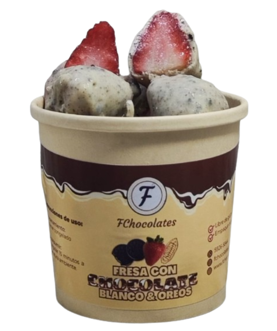 110 gramos de insuperable sabor, con estas deliciosas fresas bañadas en nuestra mezcla de chocolate blanco y Oreo, un sabor sin comparación.