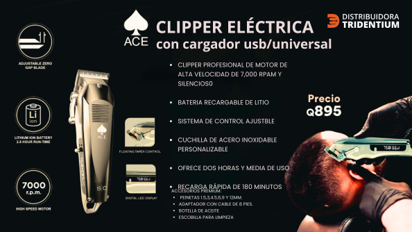 Clipper Profesional, máquina de corte de cabello, potente motor de 7,000 RPM, ofrece 3 horas de uso y recarga rápida de 90 minutos