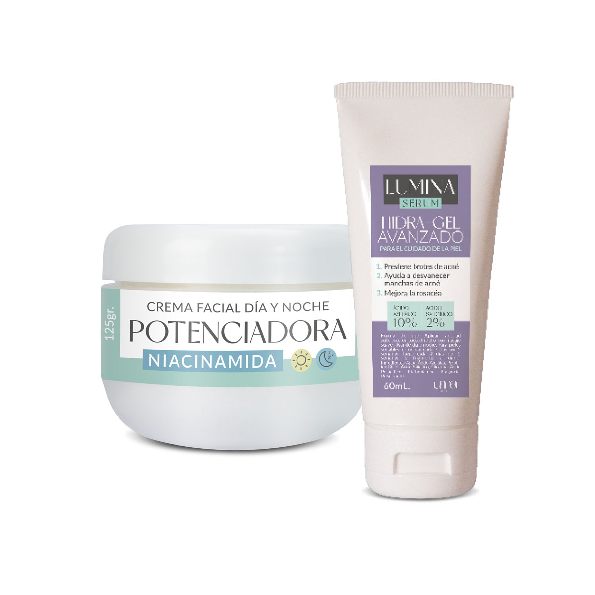Cuida tu piel con el combo de Hidra-Gel Avanzado y crema potenciadora de Uma Beauty. El Hidra-Gel Avanzado con 10% de ácido azelaico y 2% de ácido salicílico ayuda a controlar brotes de acné, disminuir manchas y mejorar la textura de la piel. La crema potenciadora con 5% de niacinamida fortalece la barrera cutánea, hidrata y potencia los beneficios de otros tratamientos. Juntos, trabajan para brindarte una piel más equilibrada, uniforme y saludable.