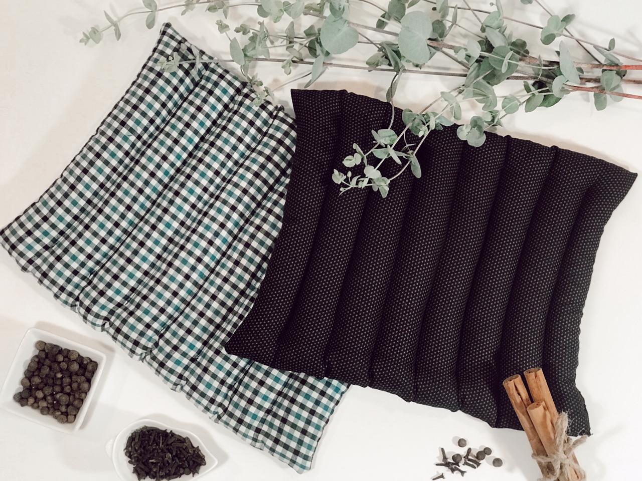 Cada empaque terapéutico está elaborado artesanalmente con semillas, especias y aceites aromáticos naturales. El color y patrón de la tela puede variar.