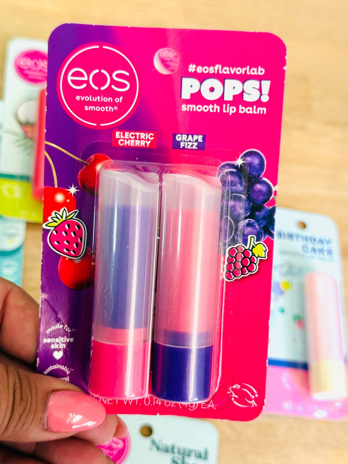| BALSAMO EOS | BIRTHDAY CAKE 1, HAPPY VIBES 4, SWEET MINT NATURAL 2, COCONUT MILK/PINEAPPLE PASSNFRUIT, BIRTHDAY CAKE 2, HONEY APPLE 1, ELECTRIC CHERRY/GRAPE FIZZ |