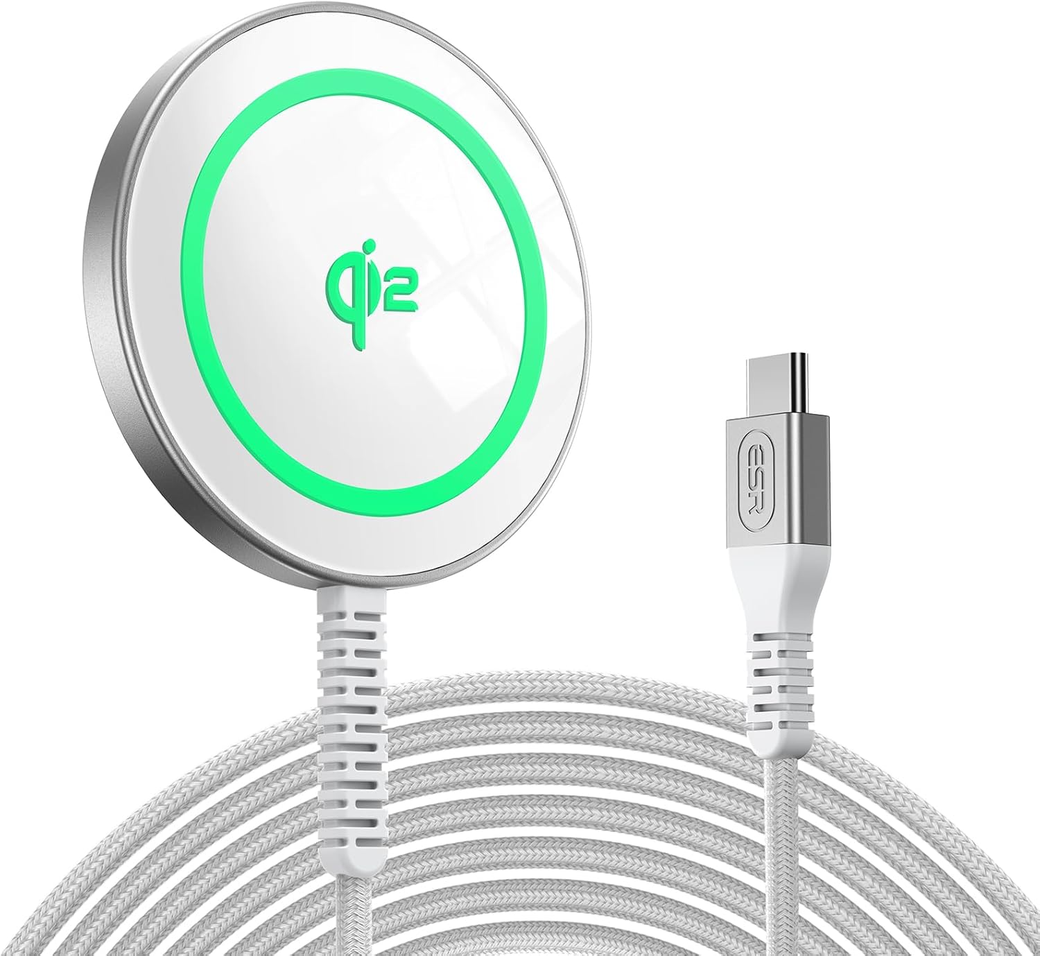 ESR para Qi2 Magsafe Charger, cargador inalámbrico de 15 W, almohadilla de carga inalámbrica para iPhone 15/14/13/12, AirPods 4/3/Pro/Pro 2, Galaxy S25, almohadilla de carga magnética fuerte con cable tipo C, plateado