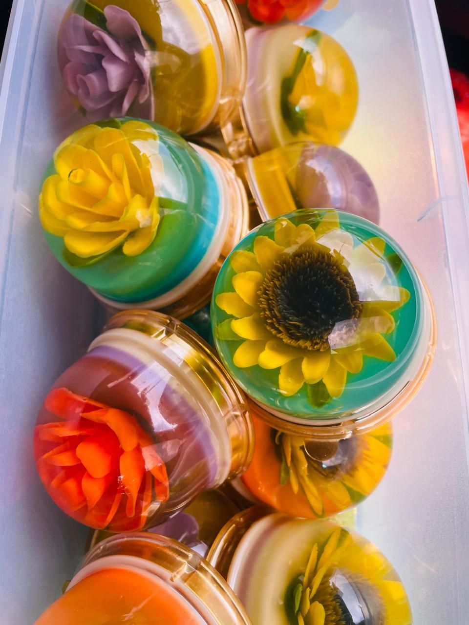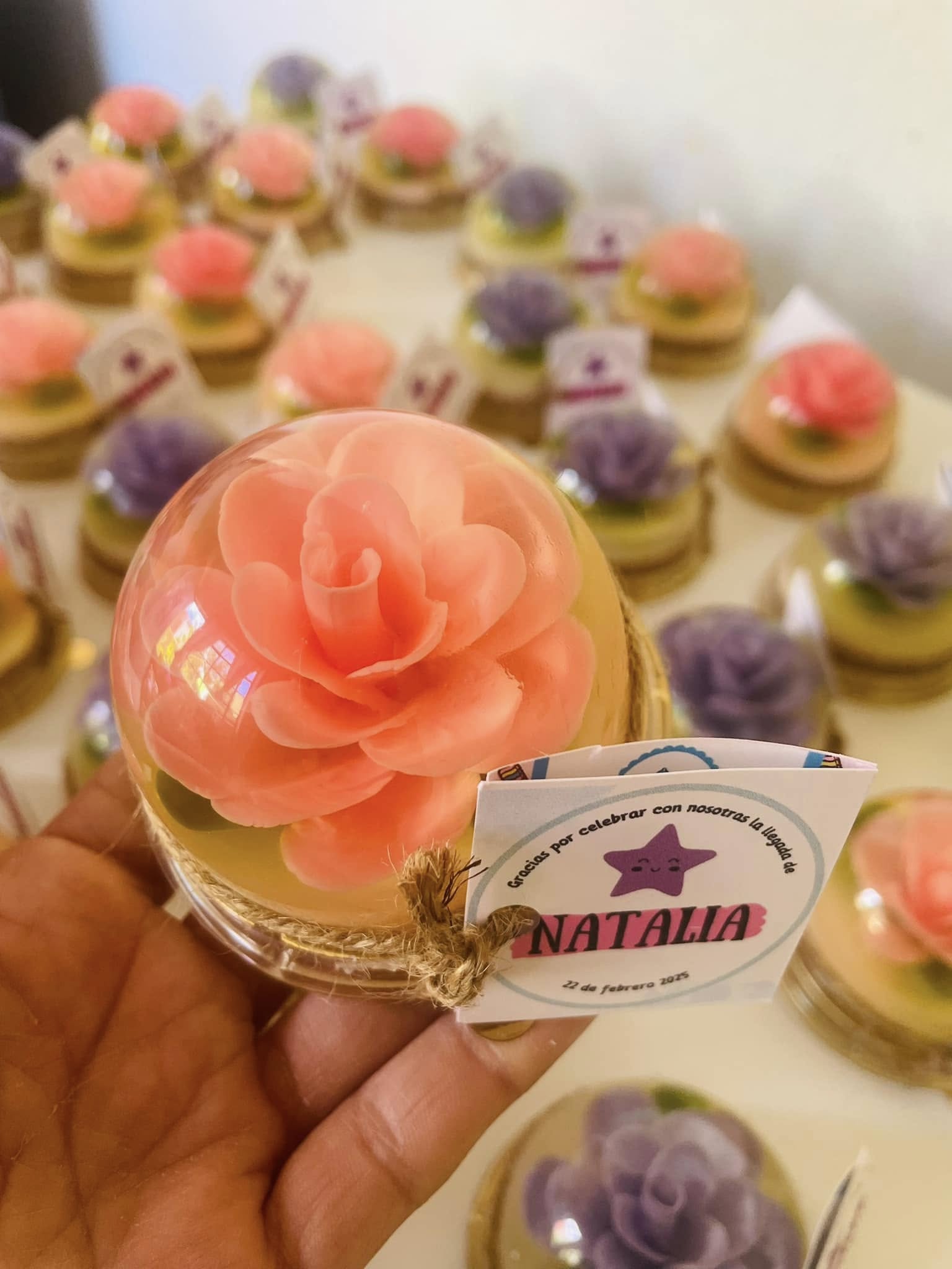 Gelatina cristalina sabor piña y flor inyectada pétalo a pétalo sabor gelatina de leche con vainilla bajas en azúcar, este producto se trabaja a pedido con 5 días de anticipación.