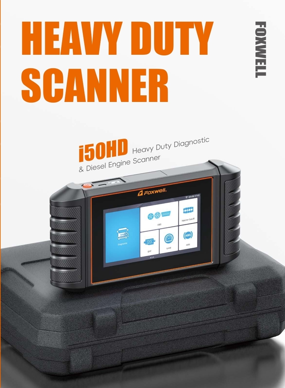 - Funciones avanzadas de diagnóstico: El Foxwell i50HD proporciona códigos de error detallados y un análisis exhaustivo de componentes clave del vehículo, como el control del motor, la transmisión, los sistemas de tratamiento de gases de escape, el ABS, los sistemas de presión de aire y la gestión del combustible. Esto permite a los talleres y administradores de flotas identificar problemas rápidamente y planificar reparaciones precisas.