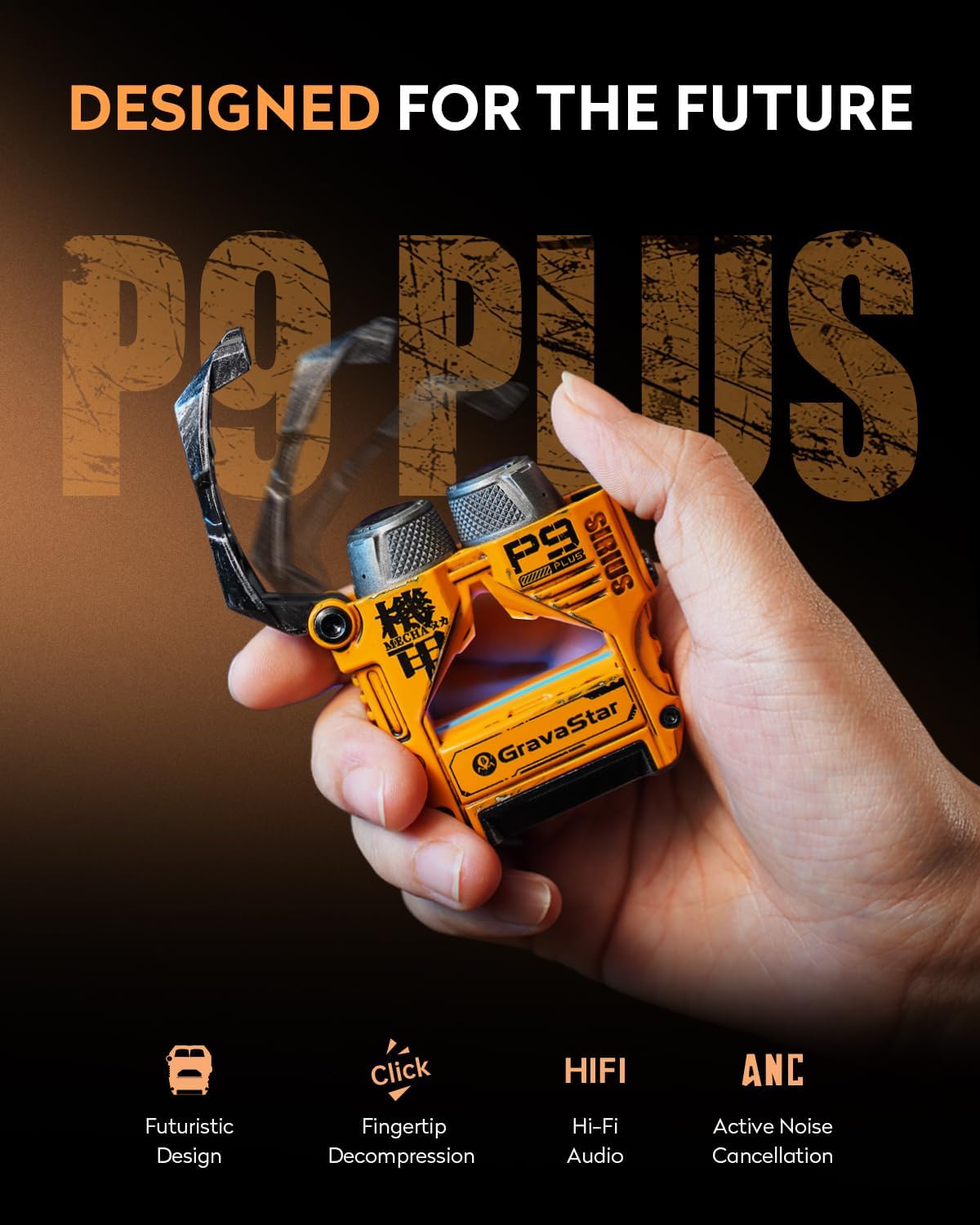 GravaStar Sirius Plus True Wireless Earbuds, Bluetooth 5.3 Active Noise Cancellation ANC Headphones, 28H Playtime, ENC Clear Call, Customization App, IPX4 for Sports/Work -Yellow