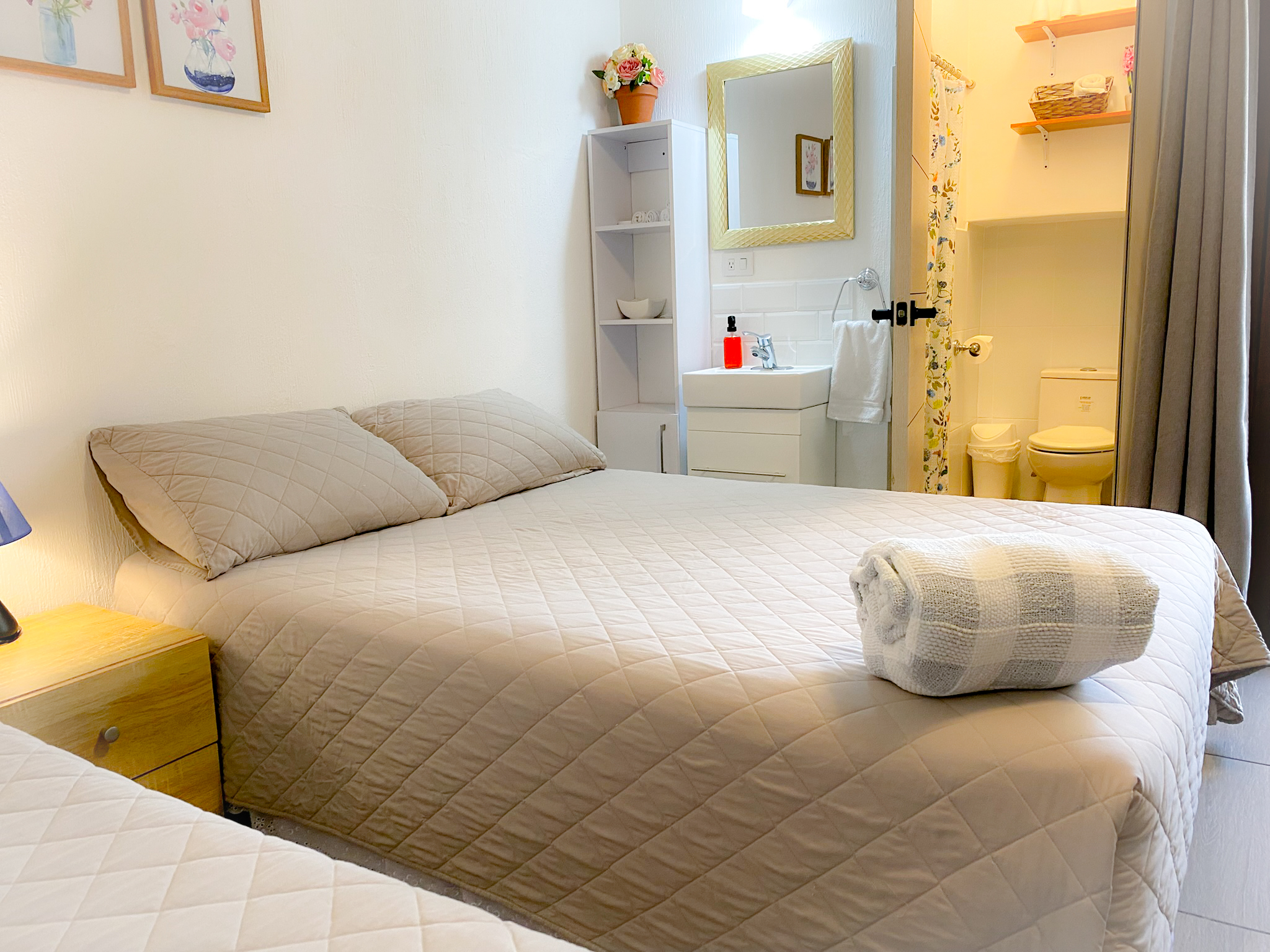 Habitación familiar amueblada, con baño privado, con aire acondicionado, TV con cable, Netflix, HBOMax, Primevideo. Para 2 a 6 huéspedes. Tarifas diferentes aplican para habitación doble, triple, cuádruple, quíntuple, séxtuple.