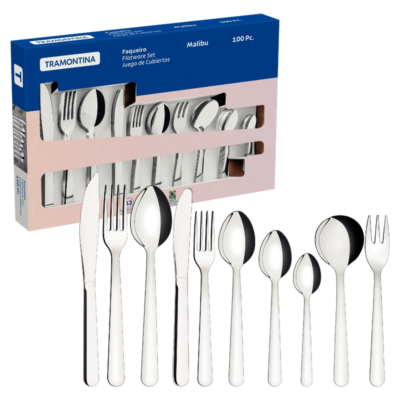 Juego de cubiertos Tramontina Malibu de acero inoxidable, 100 piezas