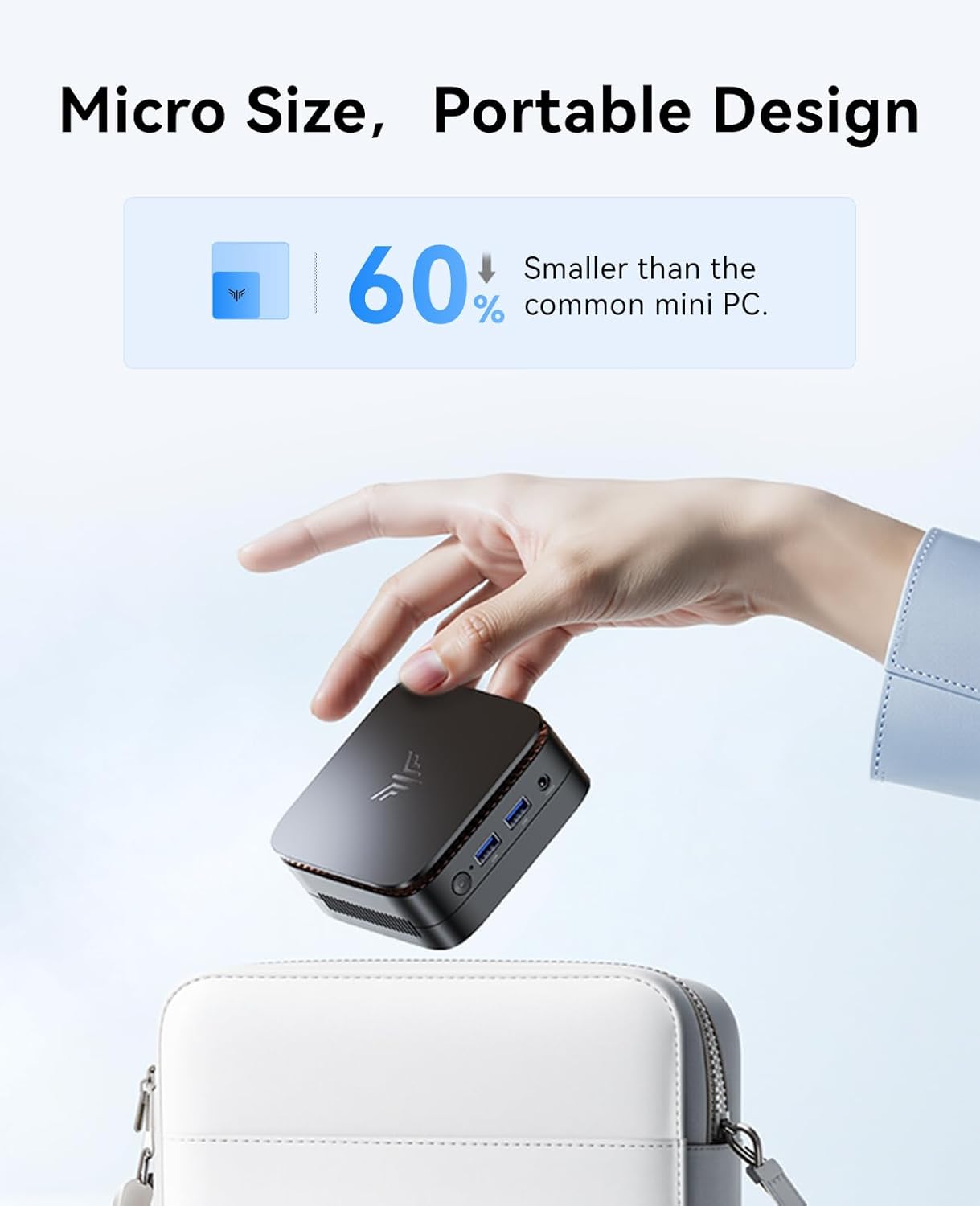- Ideal For Multitasking: The Mini Computer has equipped with 12GB LPDDR5 and 256GB M.2 2280 SSD. Sufficient capacity allows you to get rid of the trouble in multitasking. Capacity upgrade options: replace the M.2 SSD up to 2TB. Smooth processing speed and powerful features double your work efficiency