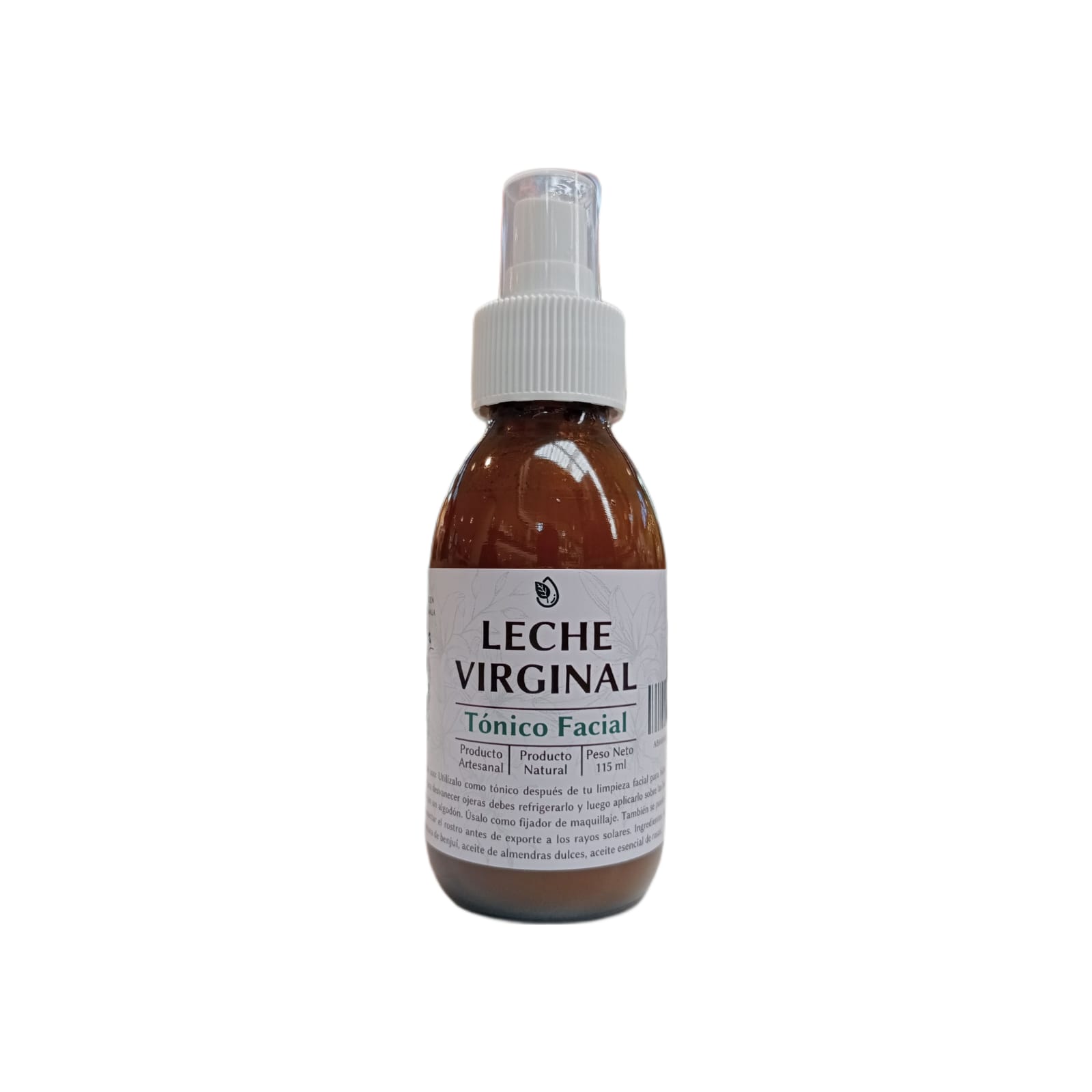 Este tónico facial es una combinación de agua de rosas, tintura de benjui, aceite de rosas y aceite de almendras. La leche virginal ayuda a desvanecer manchas de sol, edad y acné y su uso es de día y noche y también como fijador de maquillaje. Este es el primer producto que se usa después de lavar el rostro.