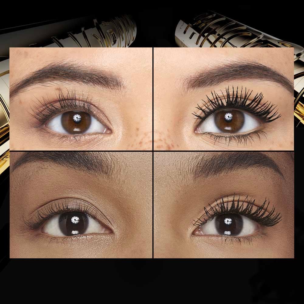 Una máscara volumizadora de larga duración que aporta un look de pestañas gruesas y desplegadas que agranda el aspecto de los ojos. La fórmula es resistente a los grumos, la descamación y el difuminado, y mantiene su belleza por hasta 24 horas.
