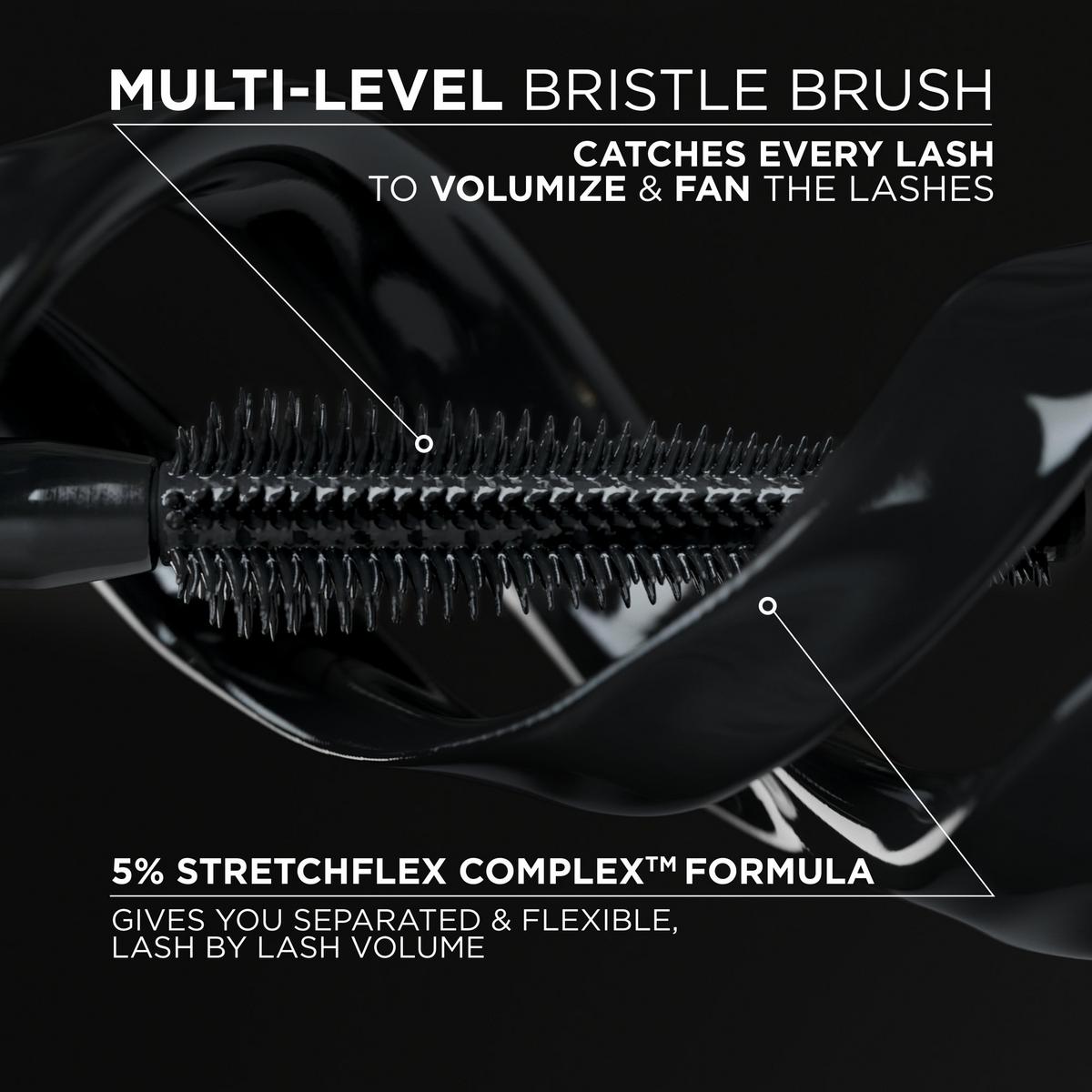 - Incluye un 5 % de complejo stretchflex que crea una apariencia de pestañas suaves y tupidas