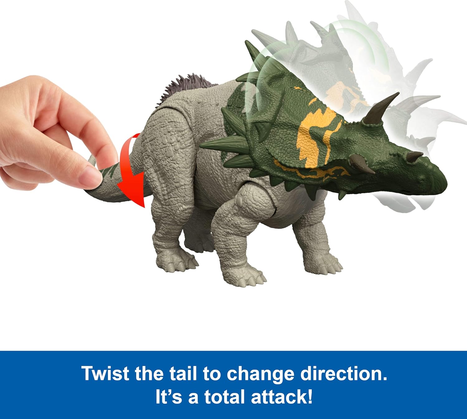 - ¡Ataca y ruge! ¡Este juguete Wild Roar Spiclypeus inspirado en Jurassic World Rebirth tiene un agresivo ataque de cabezazo que puede cambiar de dirección, y un feroz rugido para el juego de batalla de dinosaurios!