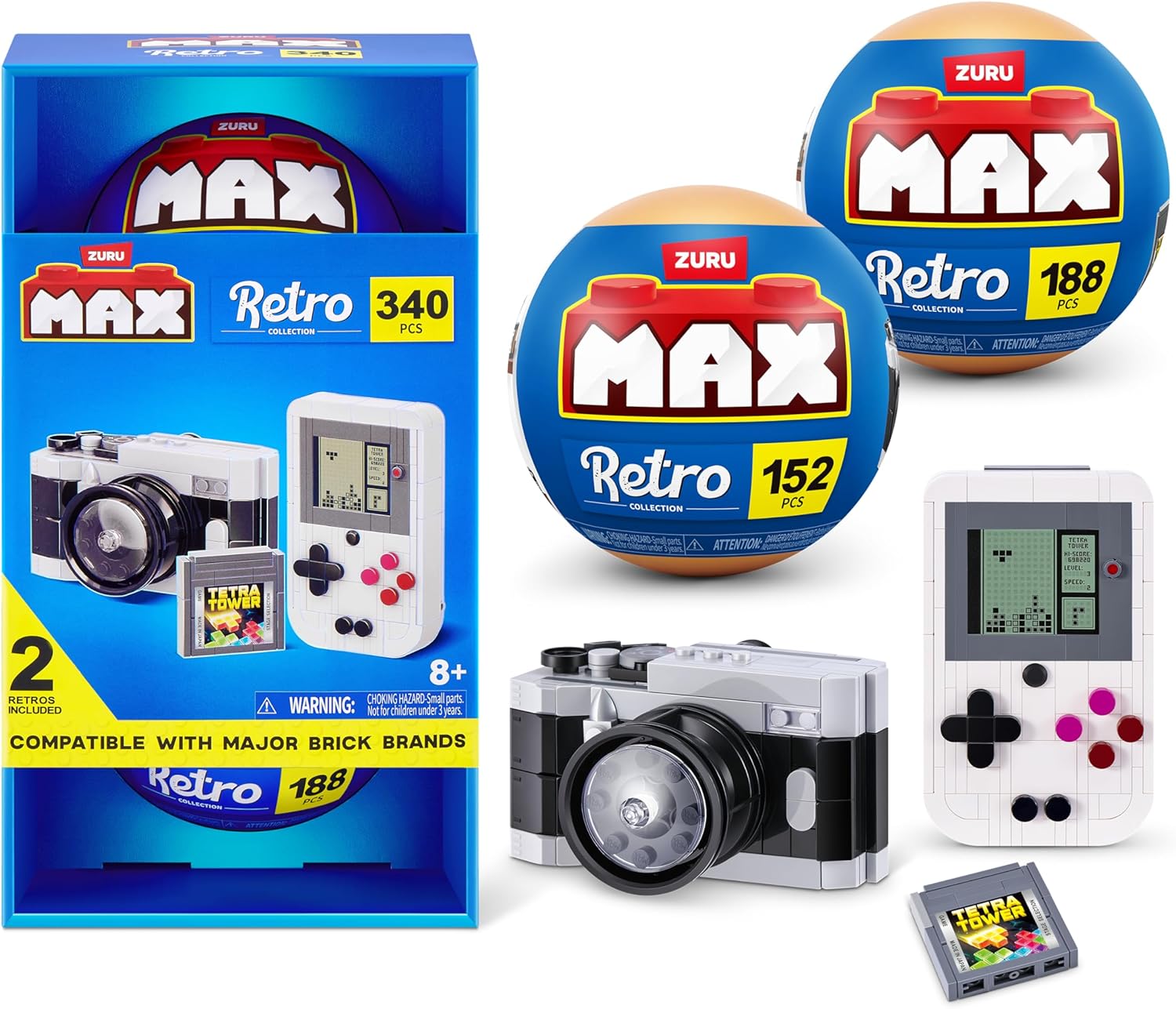 MAX Build More Premium Retro Series 2 2 Pack (Camera & Handheld Game Console) by ZURU – Novelty Unboxing Toy & Building Brick Collectible Minis with up to 188 Pieces