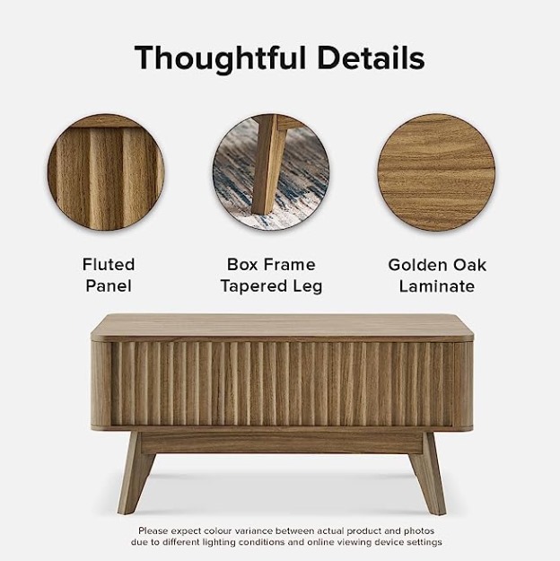 mopio Brooklyn Mid-Century – Mesa auxiliar moderna con parte superior elevable, panel de forma de onda con almacenamiento oculto, elegante mesa de comedor de perfil curvado (roble dorado, mesa auxiliar)