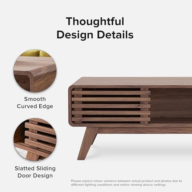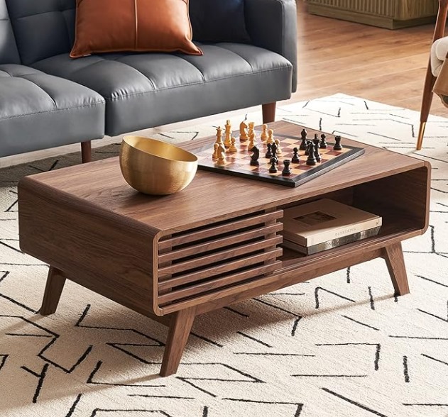 mopio Ensley – Mesa auxiliar moderna de mediados de siglo con almacenamiento, mesa de centro de granja, mesa de centro de madera, mesas de sala de estar, mesa central (flúida (nogal)