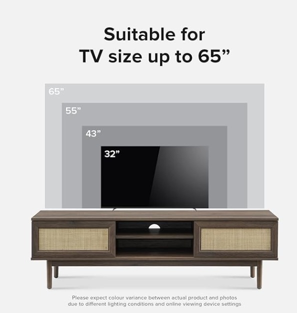 mopio Haylee – Mesa de centro moderna y bohemia con almacenamiento, mesa de centro de ratán natural, mesa central (nogal + ratán, mesa auxiliar + soporte de TV de 59 pulgadas)