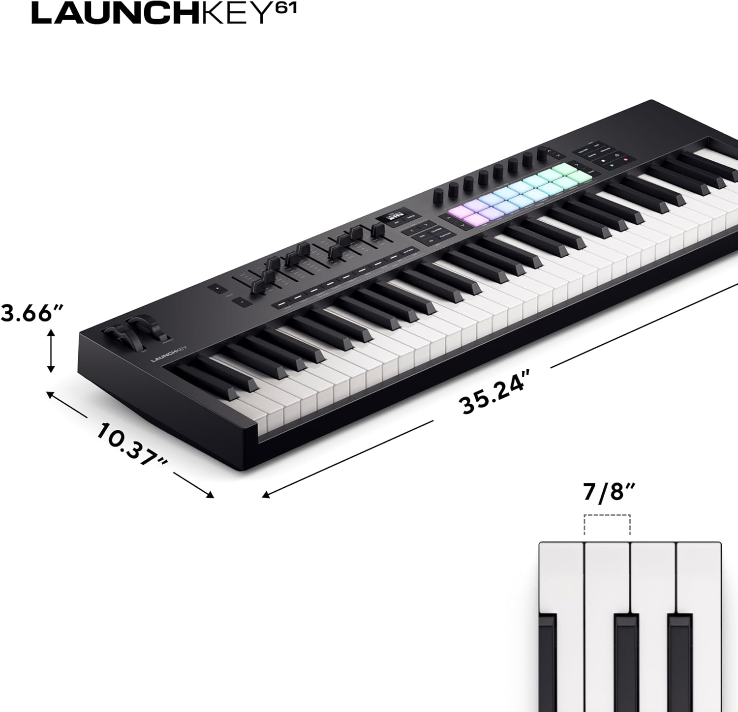 Novation Launchkey 61 MK4 – 61 key Semi-Weighted, USB, MIDI Keyboard Controller with DAW Integration. Chord & Scale Modes, 8 Drum Pads, & Arpeggiator — Includes Software Bundle for Music Production