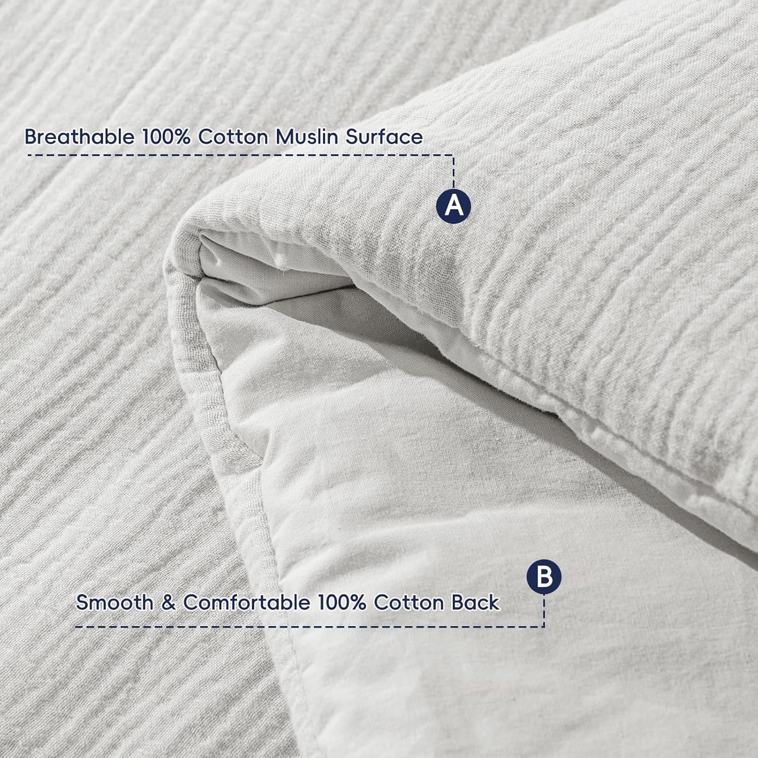 - Transpirable y comodidad para todas las estaciones para personas que duermen con calor: fabricado con muselina suave que absorbe la humedad que promueve el flujo de aire para mantenerte seco. El relleno que equilibra la temperatura proporciona calidez acogedora en invierno sin sentirte pesado, lo que te ayuda a dormir cómodamente durante todo el año, no más noches pegajosas o sobrecalentadas.