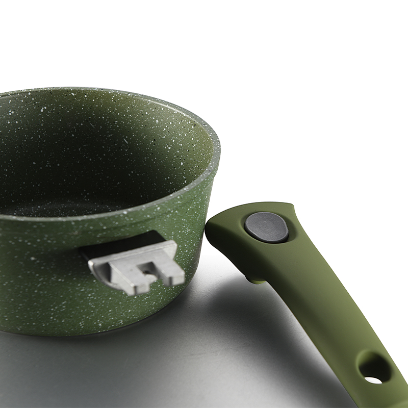 Transforma tu cocina con esta batería de diseño moderno y funcional. Su recubrimiento antiadherente tipo mármol de 4.5 mm permite cocinar con menos aceite, logrando preparaciones más saludables y una limpieza sin esfuerzo. Las tapas de vidrio templado con válvula de escape conservan el calor y permiten vigilar la cocción, mientras que los mangos ergonómicos de tacto suave, desmontables, brindan seguridad y comodidad en cada uso. Incluye: Olla de 28 cm con tapa, olla de 24 cm con tapa, cacerola de 20 cm con tapa, sartén de 24 cm y sartén de 20 cm.