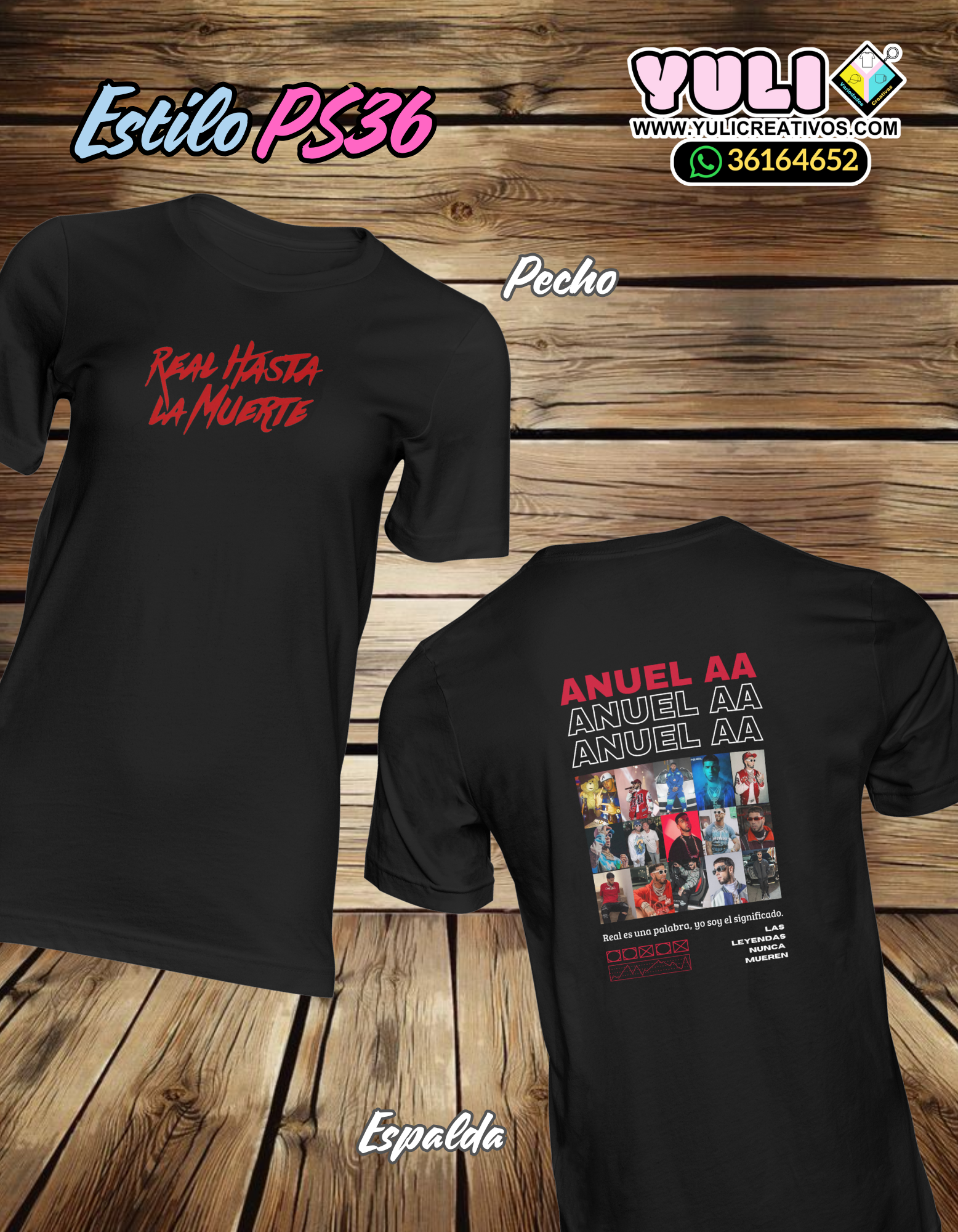 Playera de algodón en color blanco o negro, de Anuel AA, contiene collage de fotos, texto y gráficos