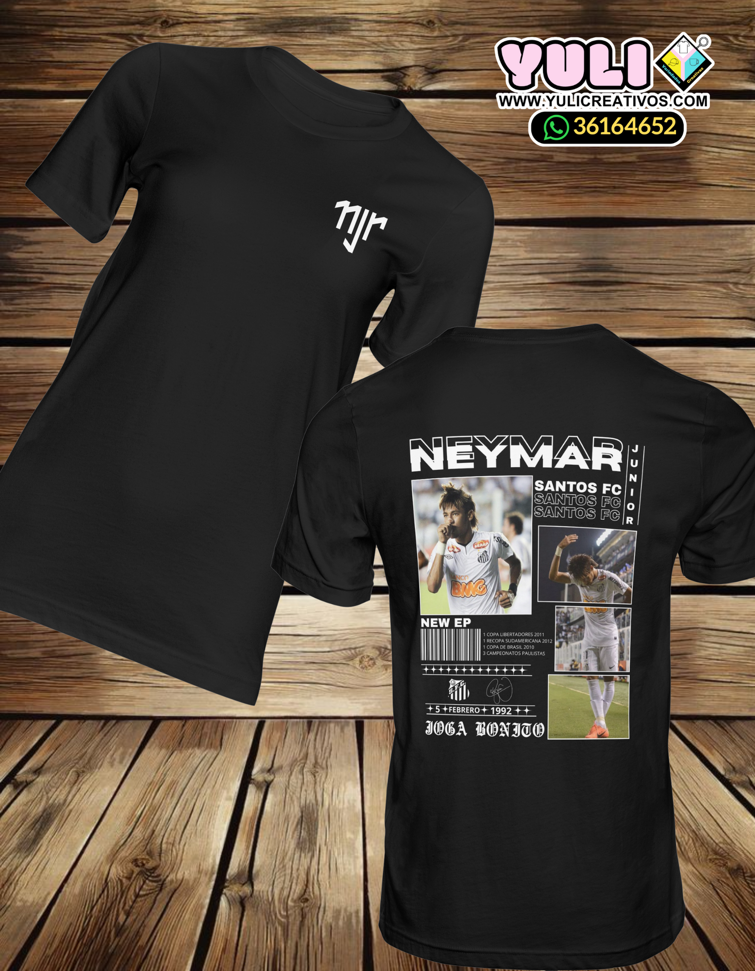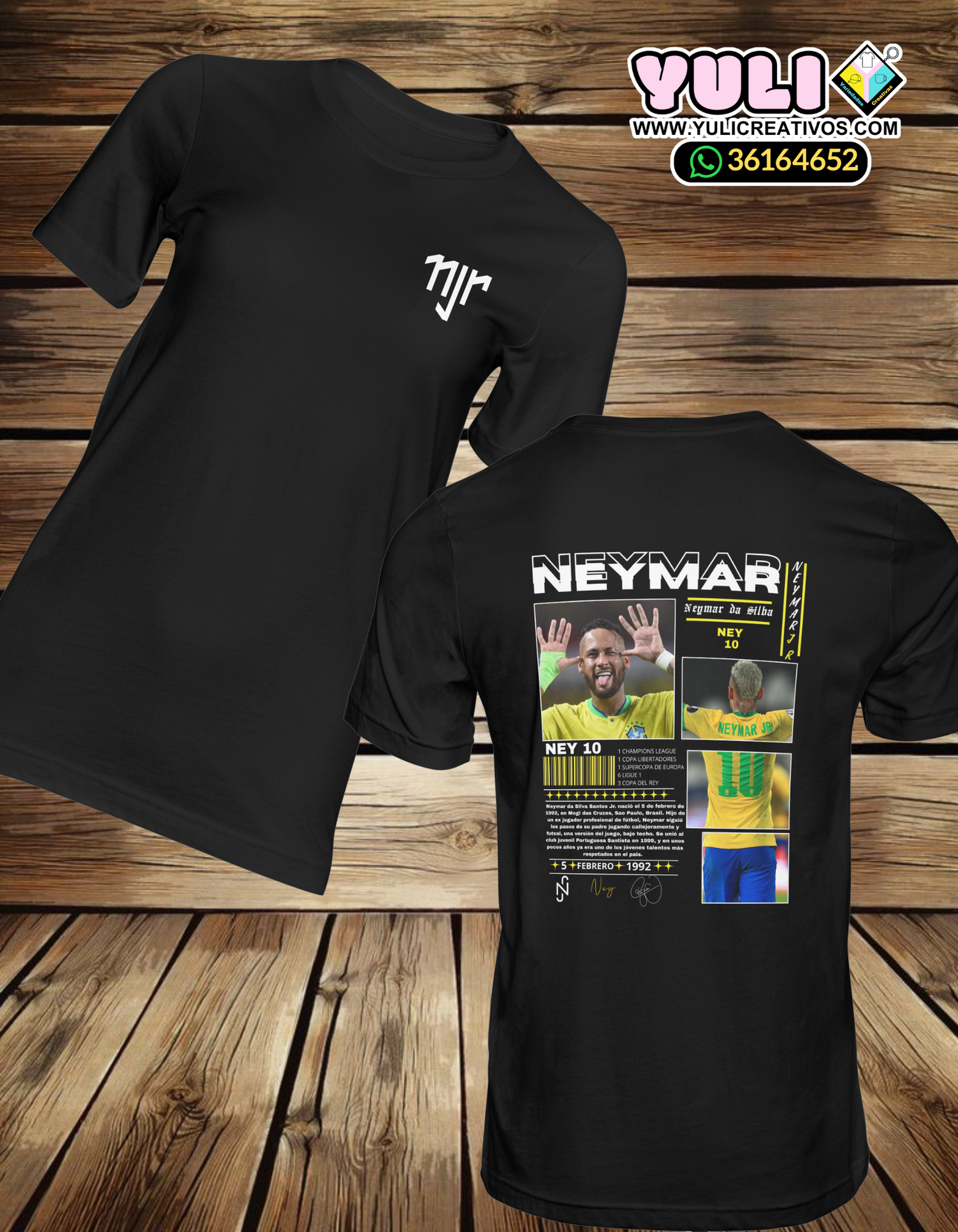 Playera de algodón en color blanco o negro, personalizada del jugador Neymar, contiene collage de fotos, texto y gráficos