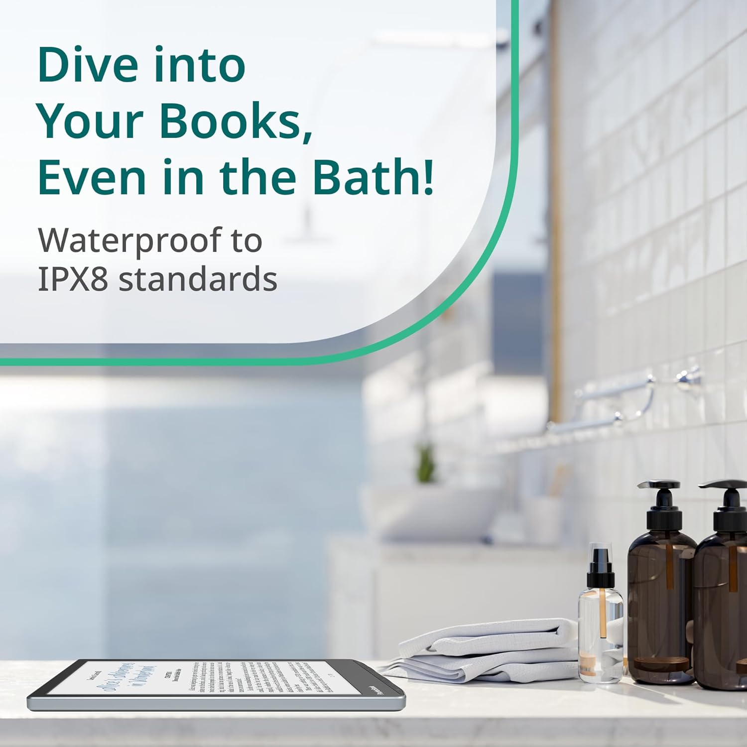 - WATER RESISTANT DESIGN AND LONG BATTERY LIFE: Ideal for travel or outdoor reading with IPX8 water protection and a powerful battery that lasts up to one month on a single charge.