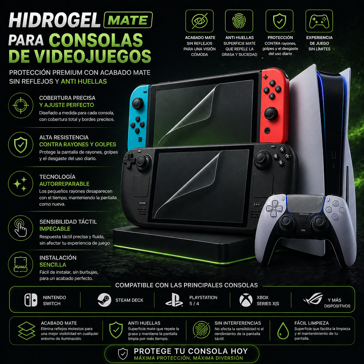 Lleva el rendimiento de tu Asus ROG Ally X a otro nivel con nuestro Hidrogel Mate. Perfecto para sesiones de gaming largas, su acabado sedoso reduce los reflejos y permite que tus dedos se deslicen más rápido. Además, mantiene la pantalla libre de huellas y protegida contra impactos severos.