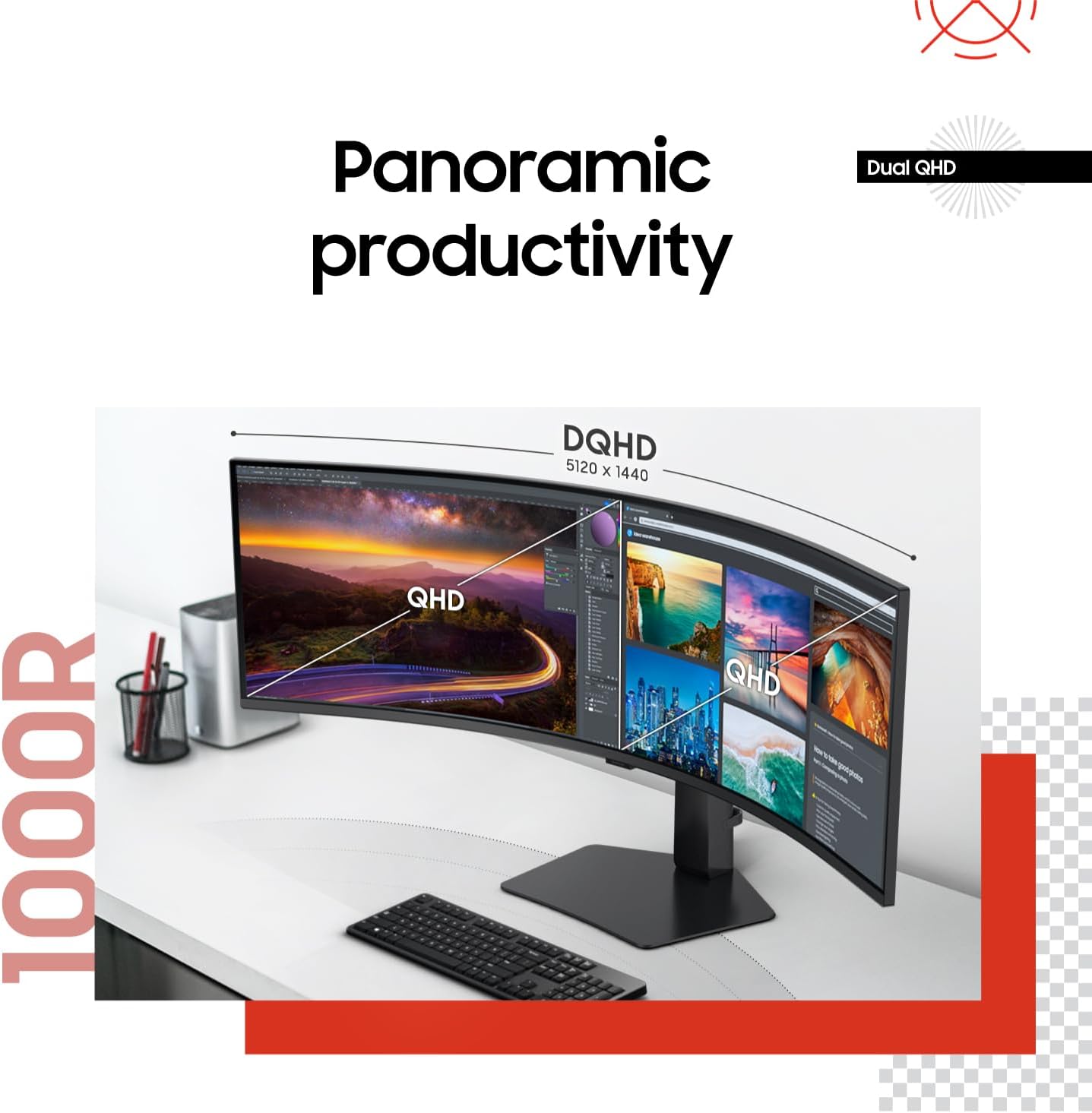 - PRODUCTIVIDAD PANORÁMICA: Sumérgete en una productividad mejorada para todos tus proyectos; una pantalla curva 1000R de 49″ te envuelve con una relación de aspecto de 32:9, que coincide con tu campo de visión. Vea y haga más con una pantalla más amplia en Dual QHD