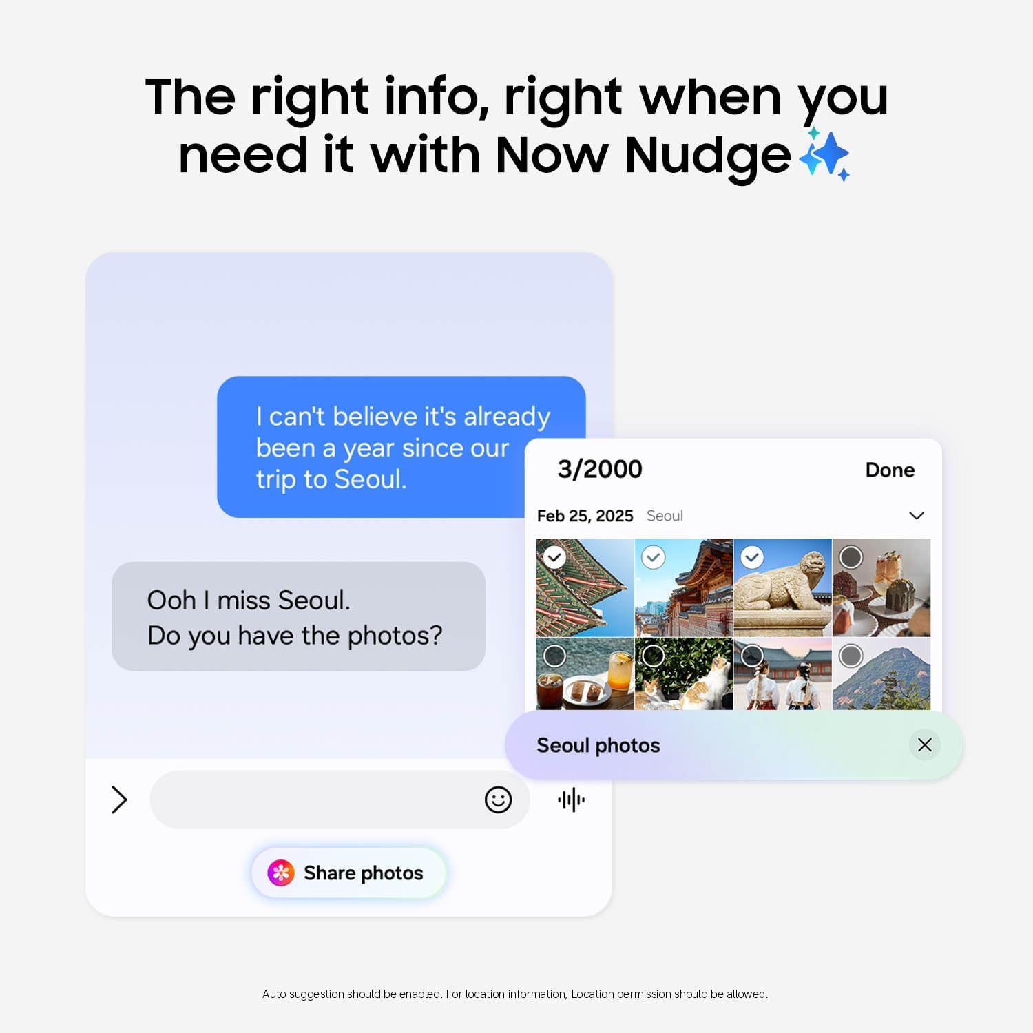 • HELP THAT KEEPS UP: Stay in the moment while Now Nudge with Galaxy AI helps you respond faster and stay organized with smart suggestions⁵ that appear exactly when you need them on your phone