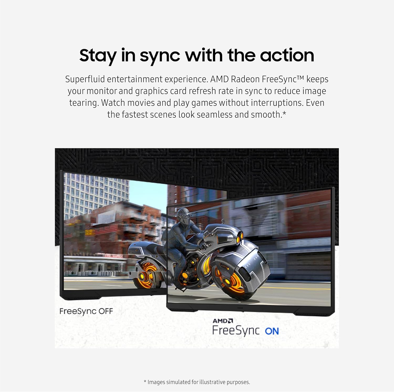 - MANTENTE SINCRONIZADO CON LA ACCIÓN: AMD Radeon FreeSync mantiene sincronizada la frecuencia de actualización de tu monitor y tarjeta gráfica para reducir el desgarro de la imagen; Mira películas y juega juegos sin interrupciones; Incluso las escenas más rápidas se ven fluidas y suaves²