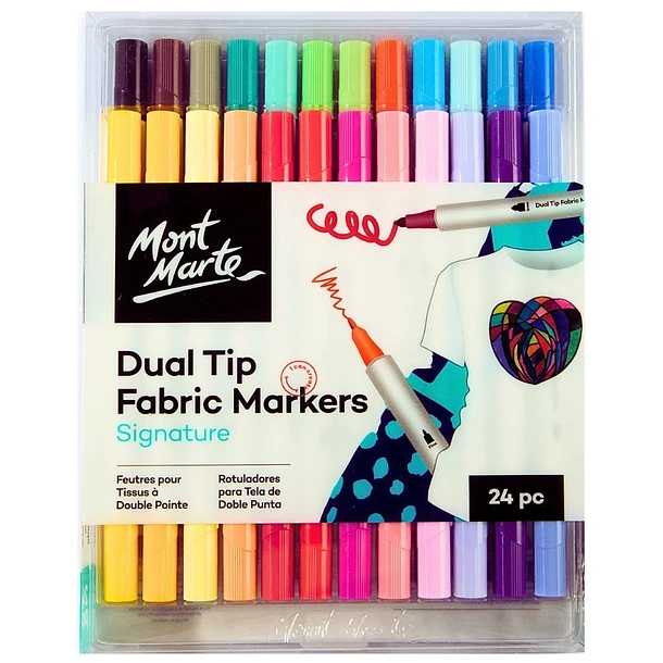 Set de 24 marcadores doble 2 y 5mms para Tela Mont Marte