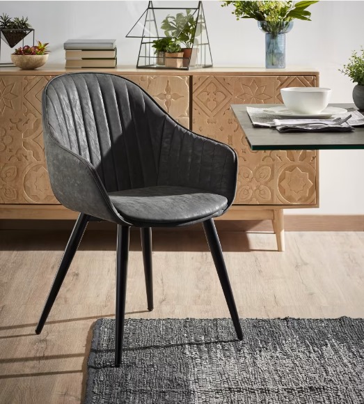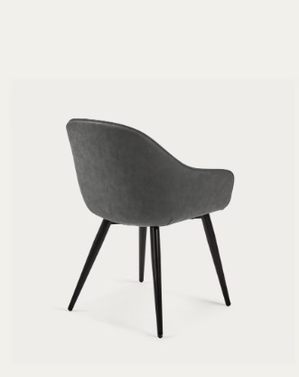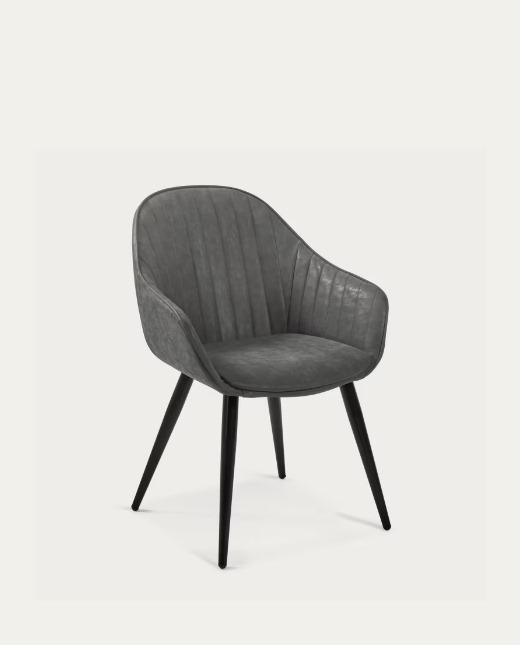 Silla Fabia de terciopelo gris oscuro con patas de acero acabado negro