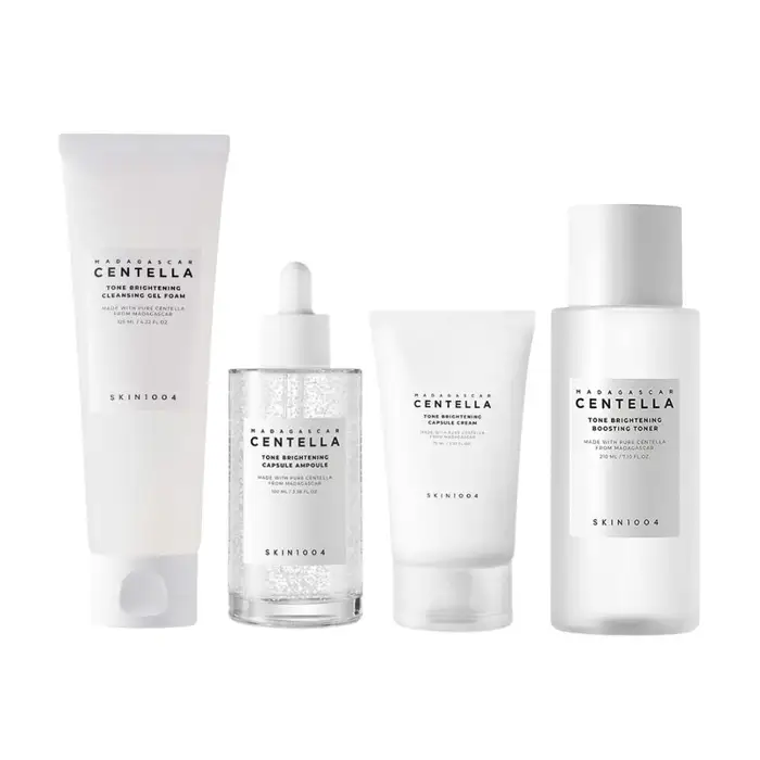 Una rutina completa diseñada para iluminar, hidratar y perfeccionar el tono de la piel. Este set combina el poder calmante de la Centella Asiática con ingredientes activos que ayudan a combatir la opacidad y las manchas, logrando un rostro más radiante y uniforme.