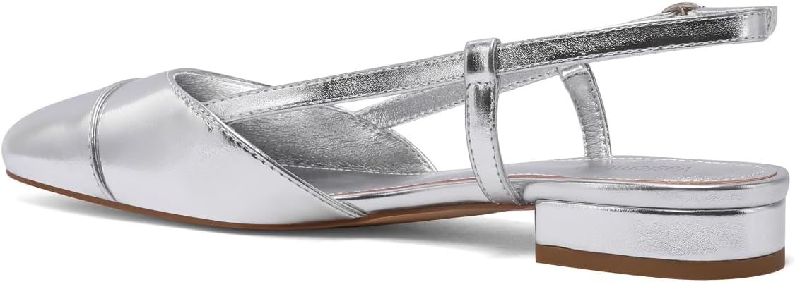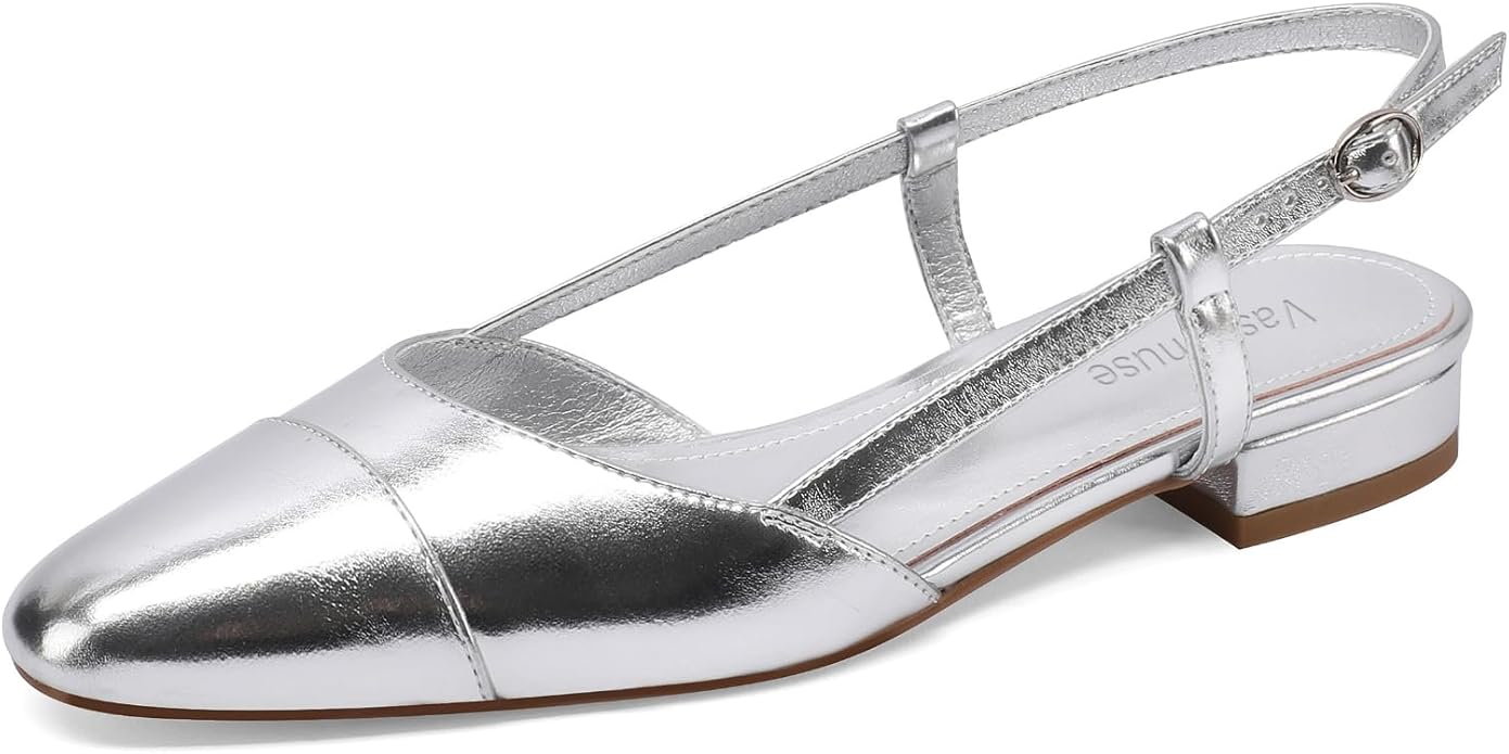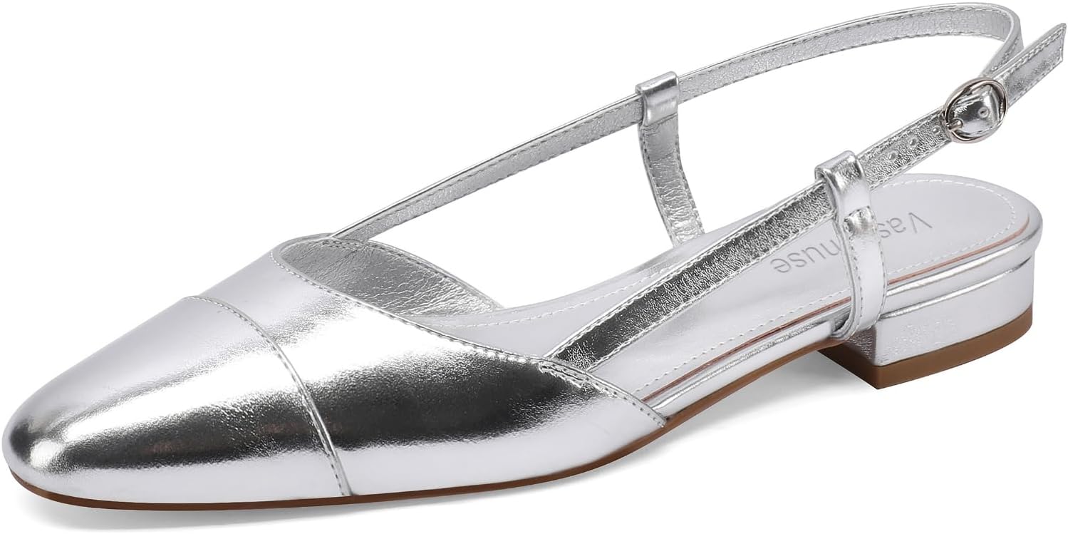 Slingback Flats for Women Two Toned Double Strap Block Low Heel Flats Classic Womens Sandals Comfortable Dressy
