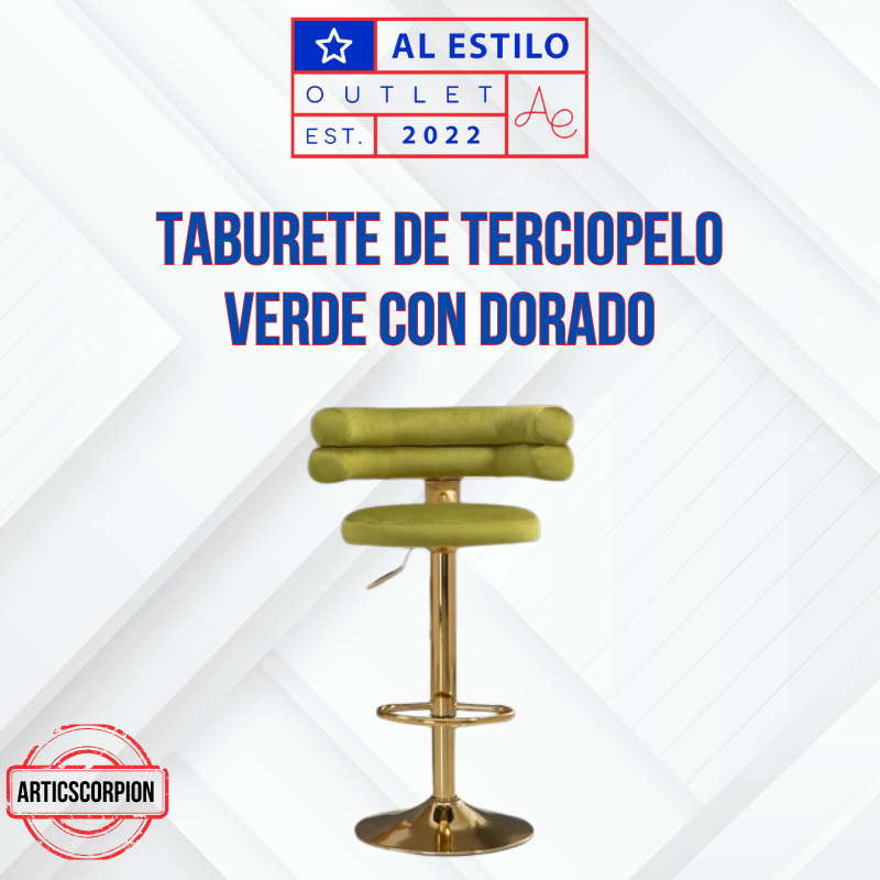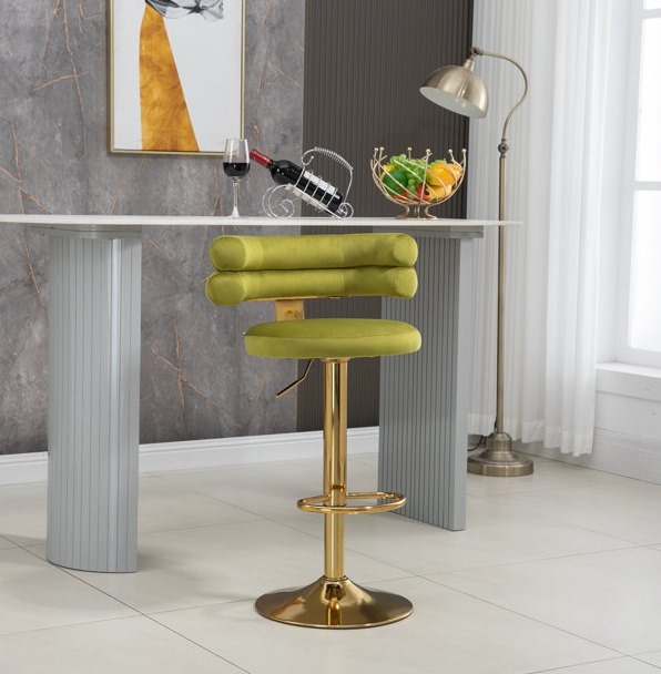 1 taburete de bar moderno, silla de bar tapizada de terciopelo con respaldo y reposapiés, taburete de bar con base dorada, cómoda silla de comedor ajustable en altura para cocina, comedor, bar, verde