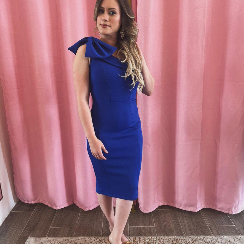 Vestido de cocktail con detalle detalle de moña al hombre