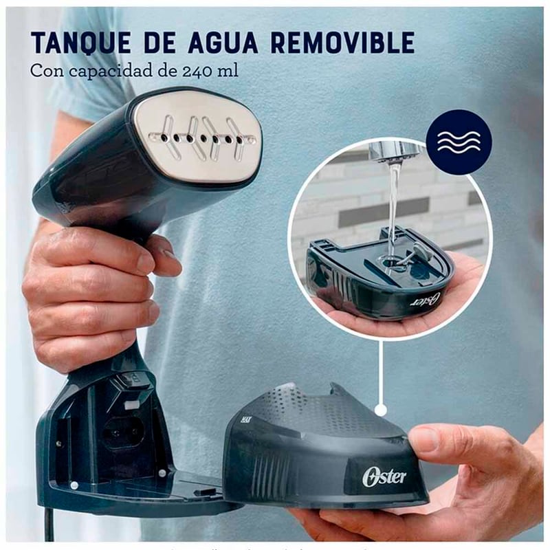 - Tanque de agua removible con capacidad de 240 ml, lo que te ofrece hasta 15 minutos de vapor continuo