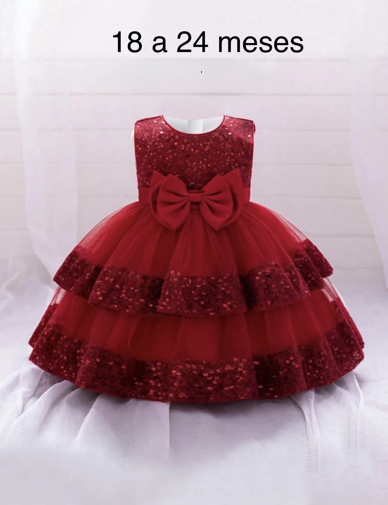 Vestido de niña con Lentejuelas color rojo talla de 18 a 24 mesesla