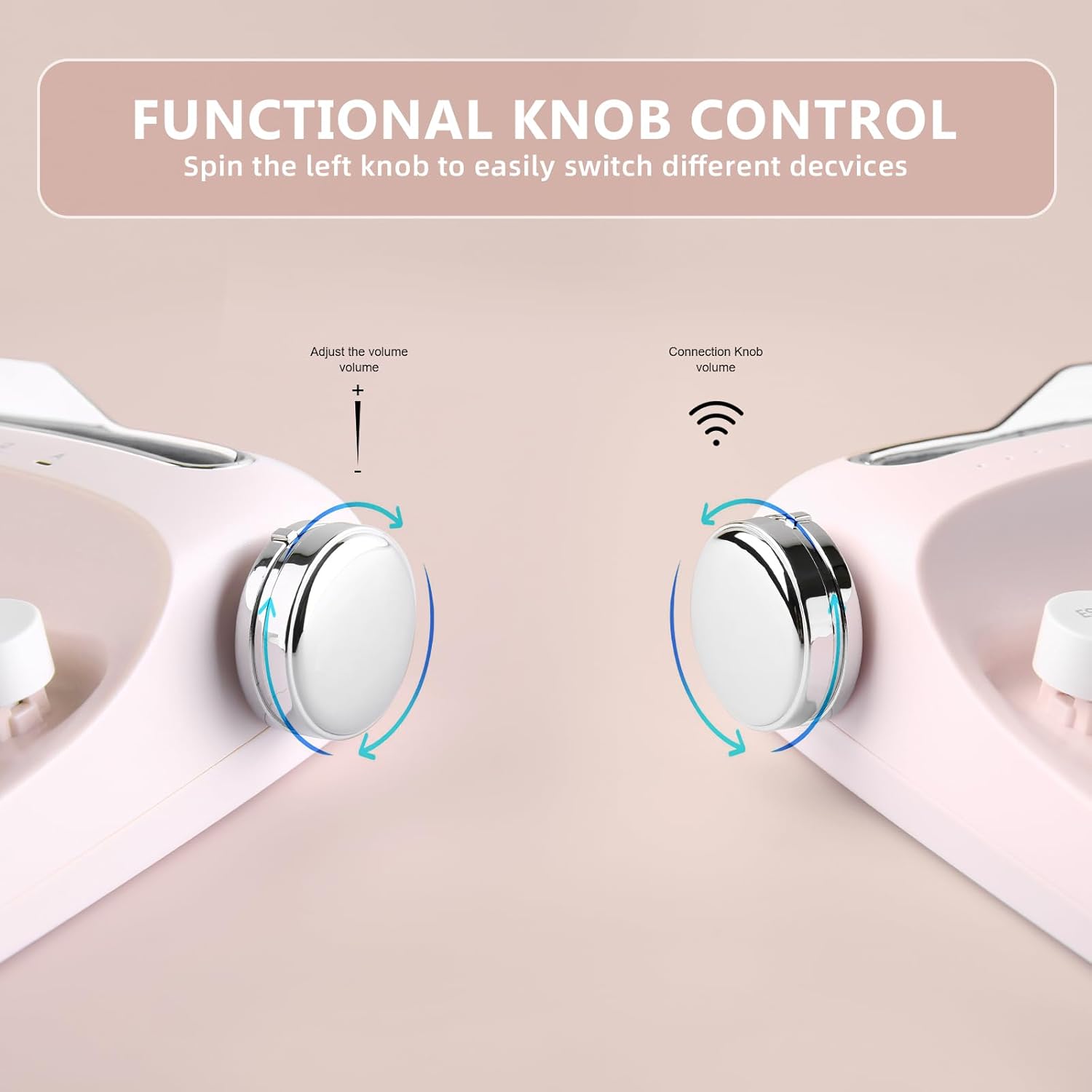 YUNZII Upgraded Wireless Typewriter Keyboard,with Retro Integrated Stand,USB-C/Bluetooth,Cute Round Keycaps, USB-C/Bluetooth Connection for Table, Phone, PC and Win/Mac/Android (B309, Baby Pink)